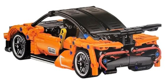 Zestaw 491 klocków konstrukcyjnych do samodzielnej budowy pomarańczowego samochodu sportowego z funkcją zdalnego sterowania. Zabawka przeznaczona dla dzieci od 6-go roku życia. Klocki i elementy autka wykonane zostały z wysokiej jakości tworzywa sztucznego. Auto posiada ruchome elementy, jak otwierane drzwi i maskę.