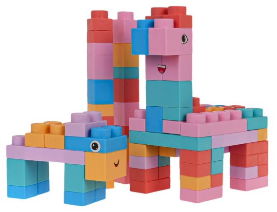Zestaw kolorowych miękkich klocków dla dzieci od 3-go roku życia. Zestaw wykonano z bezpiecznego dla dzieci i środowiska materiału PVC. Klocki są lekkie i nie posiadają ostrych zakończeń. Bardzo łatwo je utrzymać w czystości, po wyparzeniu, nie tracą kolorów. Klocuszki możemy dowolnie wyginać, a po wygięciu wracają do swojego poprzedniego kształtu.