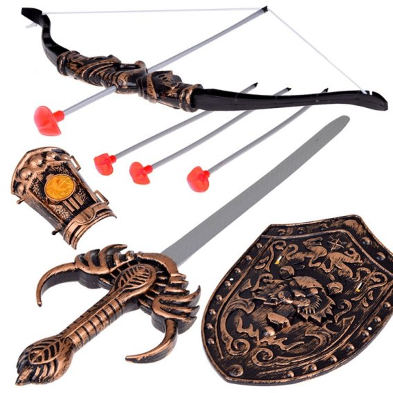 Zestaw Rycerza Łuk Miecz Tarcza Kostium Rycerski to atrybuty każdego rycerza.