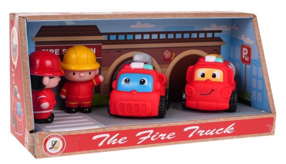 Kolorowy zestaw z figurkami strażaków i pojazdami strażackimi dla dzieci powyżej 3-go roku życia. W skład zestawu wchodzą dwie figurki strażaków i dwa autka strażackie. Autka i figurki są gumowe, koła w pojazdach zaś plastikowe. Funkcje zestawu: - odpowiedni dla dzieci powyżej 3-go roku życia, - wykonany w żywych kolorach, - idealny do odgrywania ról, - figurki strażaków posiadają obrotowe główki, - strażak z żółtym kaskiem posiada grzechotkę w środku, - autka posiadają grzechotki w środku. |