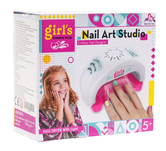 Zestaw do Malowania Paznokci dla dzieci 5+ Akcesoria 8 el. + Interaktywna Suszarka + Lakiery + Cyrkonie do zdobień