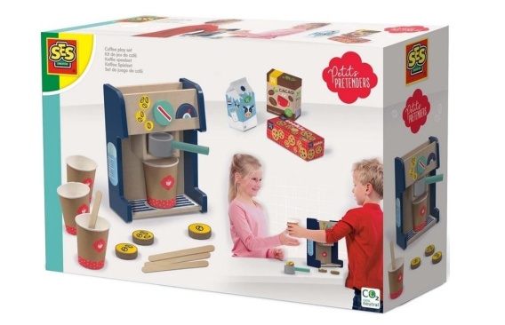 Chcesz zaparzyć filiżankę dobrej kawy, tak jak mama i tata? A może założyć własną kawiarnię? W takim razie potrzebujesz dobrego ekspresu do kawy! Ten drewniany ekspres do kawy z linii Petits firmy SES robi kawę w trzech smakach, a zestaw zawiera cztery kubki i mieszadełka do serwowania kawy. Z mleka i kakao można zrobić prawdziwe cappuccino lub caf au lait, a do tego każdy dostaje oczywiście czekoladowe ciastko! Dobrze komponuje się również z innymi produktami sklepowymi i kulinarnymi z kolekcji Petits pretenders.