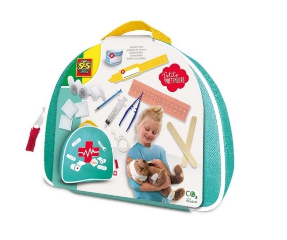 Ta torba lekarska zawiera wszystko, czego potrzebujesz, aby pomóc swoim pacjentom. Zabandażuj bratu rękę, zrób zastrzyk pluszowemu misiowi lub załóż plastry po wypadku. Wiesz, co jest takie miłe? Wszystkie narzędzia w tej walizce są prawdziwe, a dzięki poręcznej rączce z łatwością zabierzesz walizkę w dowolne miejsce. Fajnie komponuje się również z innymi produktami dla lekarzy z kolekcji Petits pretenders.