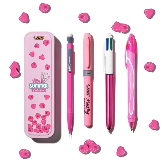 Zestaw różowy w metalowym pudełku 4 elementy.